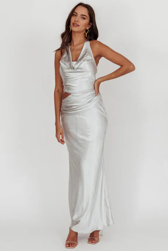 Cowl Halter Neck Cut Out Open Back Opal Maxi Evening Dress