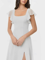 A-Line Short Sleeve Bridesmaid Dress Scoop Neck Elegant Floor Length Chiffon / Spandex with Ruffles / Draping / Split Front