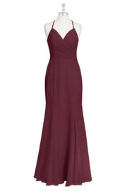 Burgundy Halter V Neck Spaghetti Straps Open Back Mermaid Long Bridesmaid Dress - US 2 / UK 6 / EU 32
