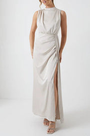 Cowl Neck Sash Satin Retract Your Waist Sleeveless Bridesmaid Dress