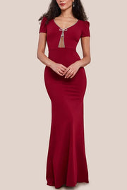 Diamante Embellished Bow Scuba Crepe Unique design Slim-fit Bridesmaids Maxi Dress