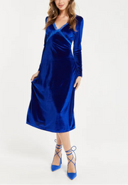 Full of charm Liquorish Royal Blue Velvet Midi Bridesmaids Dress