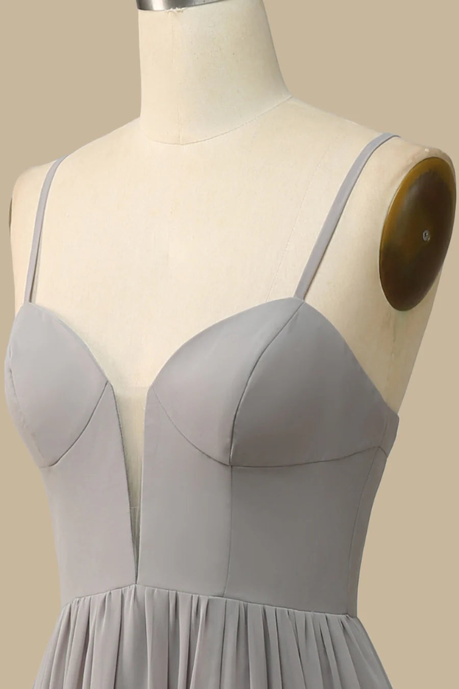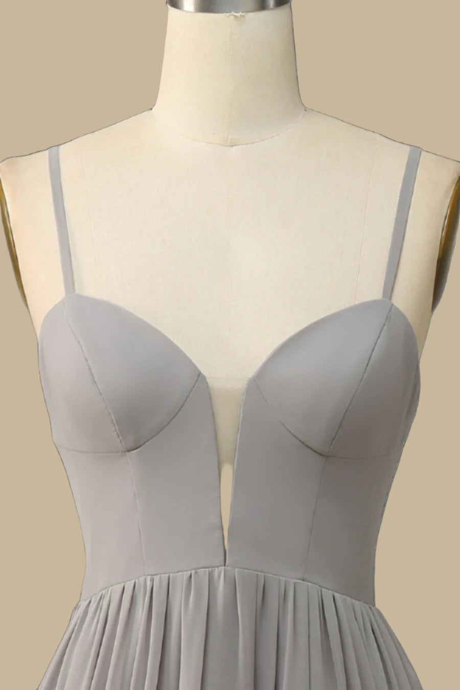 Gray Chiffon Cutout Back Corset Slit Maxi Dress Bridesmaid Dresses