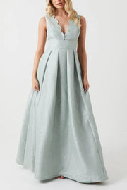 Jacquard Scallop Neck Retract Your Waist Sleeveless Maxi Bridesmaid Dress