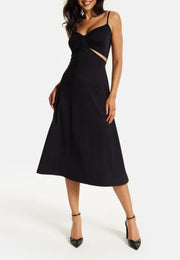 Liquorish Retract Your Waist Black Cami Bridesmaids Dress with Cut Out