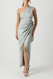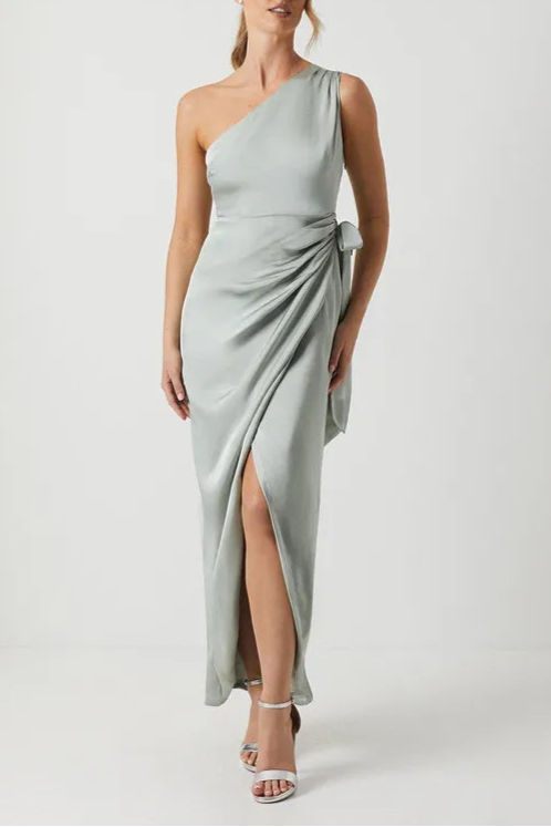 One Shoulder Wrap Unique design Satin Retract Your Waist Bridesmaid Dress