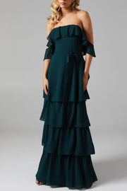 Petite Bardot Tiered Georgette One-Shoulder With Tie Detail Bridesmaids Dress