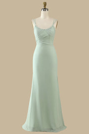 Sage Green Scoop Neck Spaghetti Straps Maxi Dress Bridesmaid Dresses