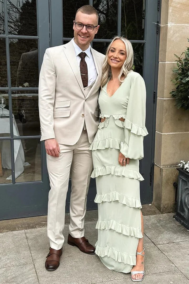 Sage Green V-Neck Ruffle Hollow Balloon Sleeves Maxi Dress Bridesmaid Dresses