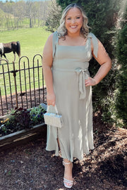 Sagebrush Square Neck Bow Strap Side Slit Midi Dress Bridesmaid Dresses