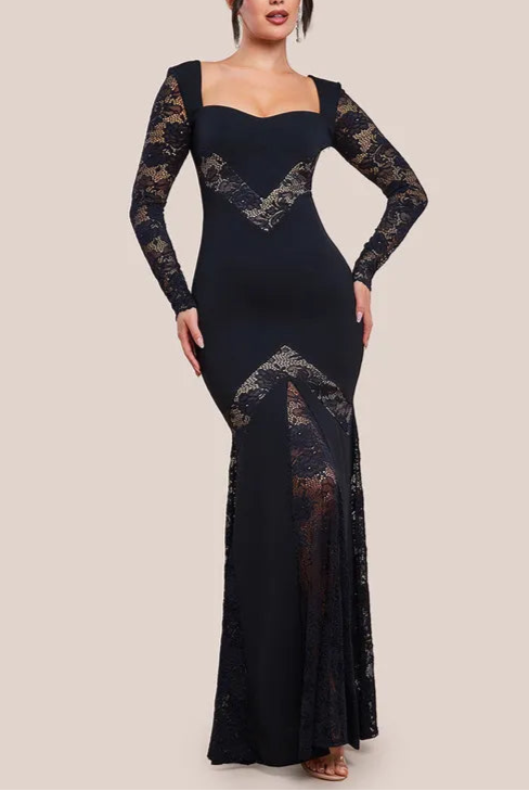 Scuba & Lace Long Sleeve Retract Your Waist Bridesmaids Maxi Dress