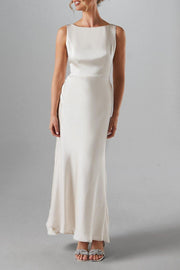 Sleeveless Satin Top-quality fabric Round Neck Retract Your Waist Bridesmaid Dress