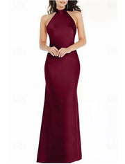 Trumpet Bridesmaid Dress Halter Neck Elegant Floor Short Sleeve Length Satin with Bow - US 2 / UK 6 / EU 32