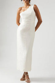 Unique design Scallop Edge One Shoulder Column Sleeveless Bridesmaid Dress