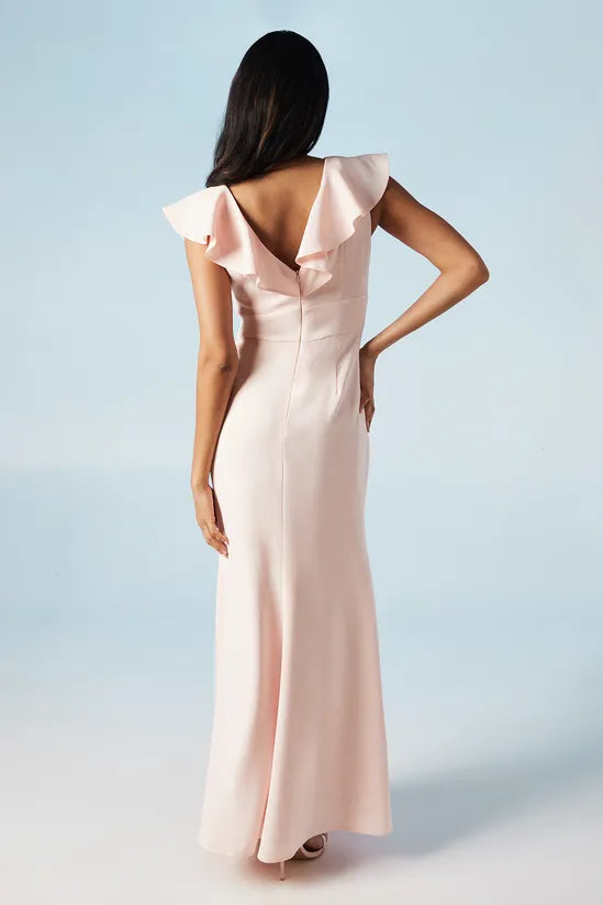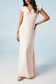 V Neck Shoulder Detail Crepe Slim-fit Elegant and gentle Bridesmaids Dress