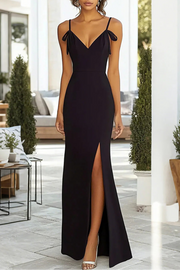 Black Spaghetti Straps Sheath Long Formal Evening Dress With Slit