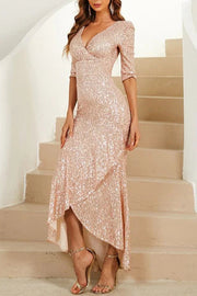 Champagne Sequin V-Neck Mermaid Unique design Long Evening Dress