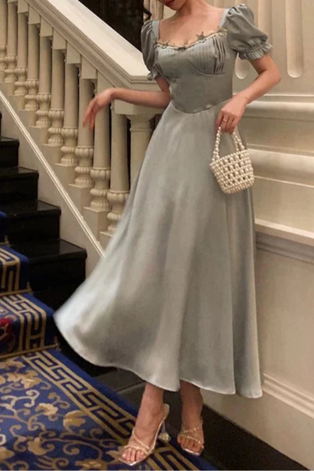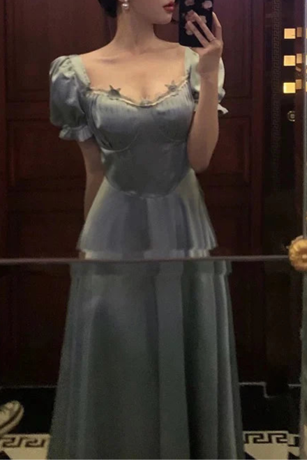 This elegant blue satin gown features a flattering A-line silhouette with a sweetheart neckline and short sleeves, perfect for prom, birthdays, or evening events. The smooth satin fabric offers a luxurious feel and graceful drape, enhancing your silhouette while providing comfort throughout the occasion. Its timeless design ensures you look sophisticated and stylish at any special event.