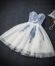 Cute Blue Tulle Lace Short Prom Dress, Sweetheart Neck Homecoming Dress