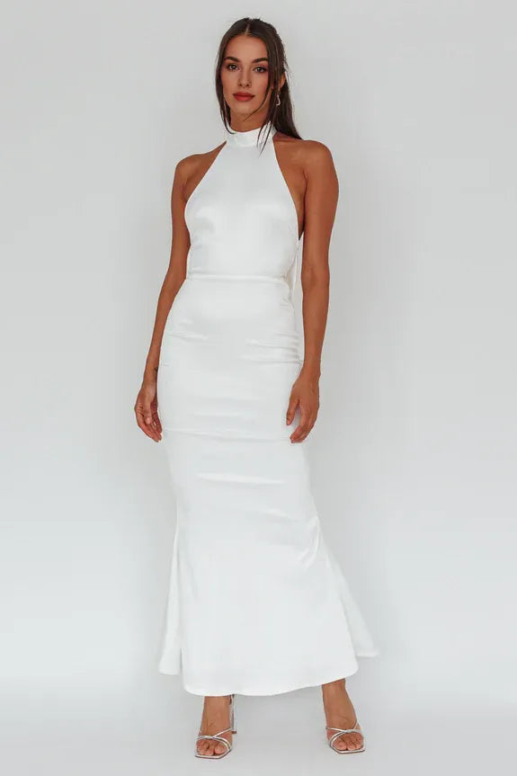Elevate your evening style with this Elegant Halter Neck Open Back Bow Baby Pink Maxi Evening Dress. The halter neck design exudes sophistication, while the open back with a bow detail adds a romantic and alluring touch. Crafted in a soft baby pink hue, the maxi length creates a graceful silhouette.