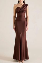Full of charm Dark Brown One Shoulder Satin Long Mermaid Evening Dress - US 2 / UK 6 / EU 32