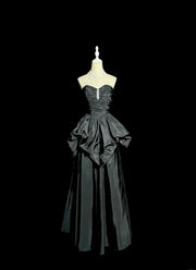 Glam Neck A-Line Taffeta Long Prom Dresses Elegant Black Sweetheart Formal Evening Gowns