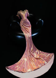 This elegant evening gown features a luxurious satin fabric adorned with delicate applique details, creating a refined and sophisticated look. The off-the-shoulder design highlights the neckline, while the mermaid silhouette and corset structure provide a flattering, form-fitting shape. Ideal for formal events, this dress combines classic craftsmanship with modern style for a stunning party-ready ensemble.
