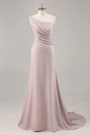 Khaki Satin One Shoulder Mermaid Retract Your Waist Long Formal Evening Dress