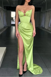 Light Green Sweetheart Mermaid Off Shoulder Evening Dress With Split