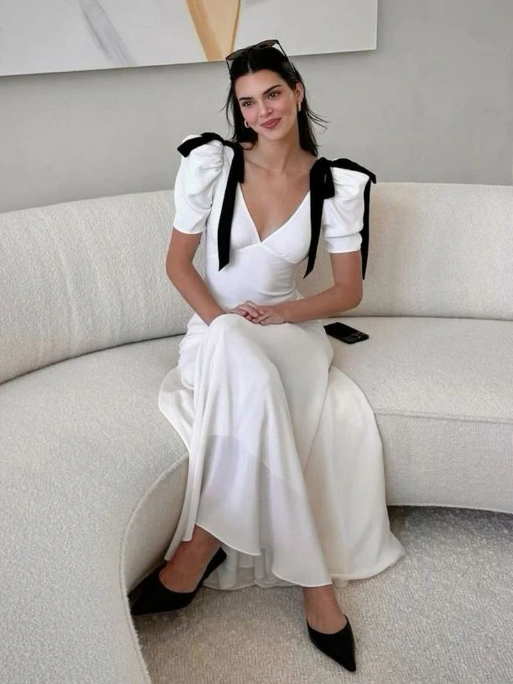 Maxi Dress for Women V-neck Puff Sleeve Elegant Party New Fashion Evening Dress