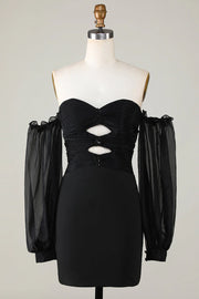 Off The Shoulder Unique design Keyhole Black Homecoming Dress With Beading