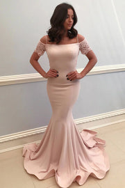 Pink satin mermaid long prom dress,Slim-fit evening dress