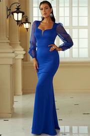 Royal Blue Long Sleeve Floor Length Mermaid Formal Dress Evening Dress