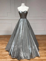 Simple sweetheart neck satin gray long prom dress gray formal party dress