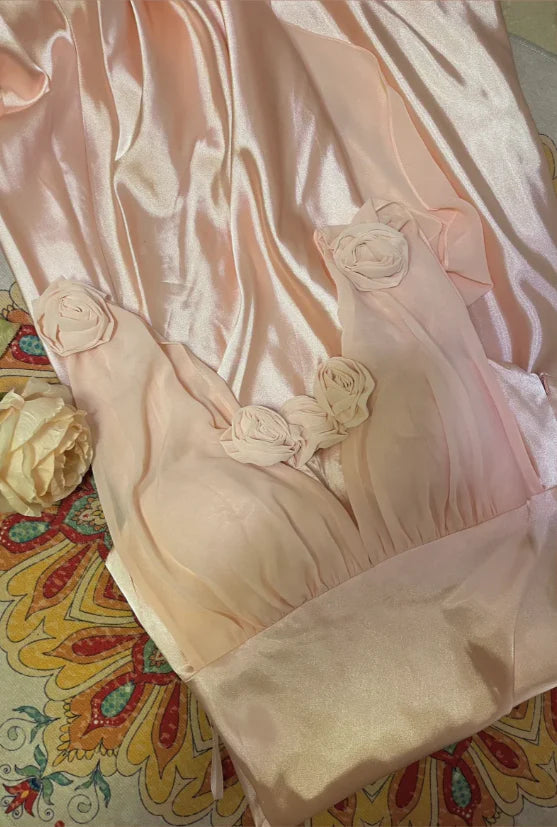 Elevate your evening elegance with this Sweet Pink Satin gown, featuring a delicate 3D rose design that adds refined texture. The flattering V-neckline and soft ruffles enhance femininity, while the long silhouette with a sweep train ensures graceful movement. Perfect for prom or formal occasions, this dress combines sophisticated style with comfortable satin fabric for a memorable look.