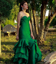 Sweetheart Ruffle Green Satin Long Prom Dress Charming Mermaid Evening Dresss