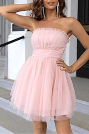 Unique design Pink Strapless A Line Tulle Retract Your Waist Short Homecoming Dress