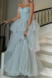 Unique design Tulle Strapless Multi-layered Retract Your Waist Evening Dress