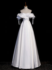 White A-Line Satin Long Prom Dresses, White Exquisite tailoring Evening Dresses