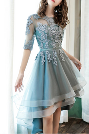 As Pic Lovely Lace O-Neck High Low Prom Dresses A-Line Homecoming Party Dresses With Applique - US 2 / UK 6 / EU 32