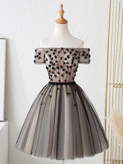 As Pic Tulle Off the Shoulder Corset Short Prom Dress With Flowers Homecoming Party Dress