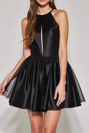 Black A Line Halter Keyhole Retract Your Waist Short Homecoming Dress
