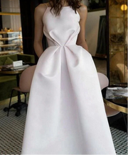 Bridelily A-Line Sleeveless Halter Tea-Length Satin Homecoming Dresses With Ruffles