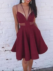 Bridelily A-Line Sleeveless Spaghetti Straps Satin Short Homecoming Dresses With Ruffles