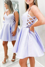 Chic Purple Satin Straps V Neck CutOut Short Prom Dresses A-Line Short Homecoming Dresses