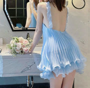 Cute A Line Halter Baby Blue Pleated Chiffon Short Homecoming Dress - US 2 / UK 6 / EU 32