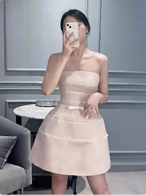 Celebrate your special day in this elegant pink satin evening dress, designed with delicate lace and slender spaghetti straps for a refined silhouette. Perfect for a 17th birthday or homecoming, its smooth satin fabric offers a comfortable fit while the lace detailing adds a touch of sophistication. This dress combines youthful charm with classic style, making it an ideal choice for memorable occasions.