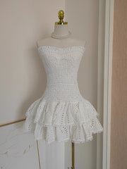 Cute Sheath Strapless White Lace Vacation Dress Exquisite tailoring Short Homecoming Dresses
