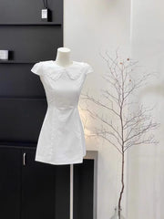 Doll Collar Sleeveless Cotton White Short Cute A Line Women's Holiday Homecoming Dresses