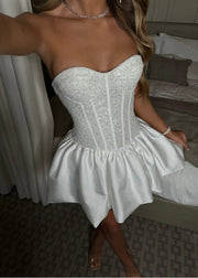 Elegant White Lace Short Prom Dresses Sweetheart A-Line Satin Homecoming Dresses